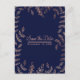 Cartão Postal De Anúncio Blue & Rose Gold Glam Botânico Salvar a Data