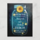 Rústico Russo Azul Mason Jar Salve os cartões postais de Data, com um fundo noturno, pirilampos voadores e sotaque margarida.
