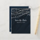 Cartão Postal De Anúncio Blue & Silver Faux Diamond Brilho Save The Date