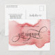 Cartão Postal De Anúncio Blush Rosa Dourado Aquarela Ficou Noiva, Noivado
