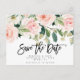 Cartão Postal De Anúncio boho blush floral casamento salve o cartão de data
