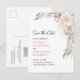 Cartão Postal De Anúncio Boho Blush Rosa Elegante Folhagem Salve a Data