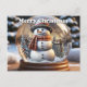 Cartão Postal De Anúncio Boneco de Neve Feliz Natal em Globo de Neve