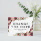 Cartão Postal De Anúncio Borgonha Desbotado Floral Troca de Data