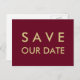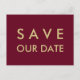 Cartão Postal De Anúncio Borgonha simples e Dourada Salvar a Data