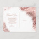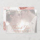 Um fundo abstrato que lembra mármore em tons de rosa suave passando por taupe e com veias de dourado rosa brilhante é o pano de fundo para texto em letra cursiva elegante e layouts de design moderno nas peças deste lindo conjunto de casamento. O cartão postal de foto mostrado aqui apresenta o acima mais o texto opcional em letra cursiva fluída 'Obrigado' e um modelo para adicionar os nomes dos noivos, data do casamento e mensagem pessoal de agradecimento. Procure o ID644 para ver todas as peças coordenadas neste conjunto.