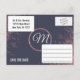 Glamoroso, chique e elegante falso brilho impresso rosa dourado em azul marinho, cartões-postais de casamento Save-the-Date. Este design clássico e sofisticado é perfeito para o casal que se casa moderno e elegante. Personalize com sua própria mensagem na frente, bem como um monograma inicial personalizado no verso. Todo o design de impressão de fotos.