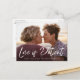 Precisa adiar a data do seu casamento? Nossos cartões-postais modernos de adiamento de casamento são perfeitos para ajudar a notificar os convidados da sua nova data de casamento. O cartão-postal de mudança de data apresenta "O Amor é Paciente" em uma sobreposição de roteiro de pincel branco com sua foto de noivado horizontal. Personalize o cartão-postal adicionando seus nomes, endereço de devolução, detalhes do casamento, site do casamento, etc.