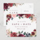 Cartão Postal De Anúncio Burgundy rustic boho floral salvar a data