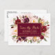 Cartão Postal De Anúncio Burgundy Vermelho Floral Rústico Boho Salve o Data
