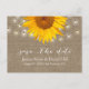 Cartão Postal De Anúncio Burlap String Lights & Sunflower Save Date