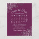 Cartão Postal De Anúncio Calendário de Silver & Cassis Wedding Save the Dat