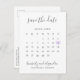 Moderno salve o cartão postal de data com um calendário simples em cinzas suaves com as palavras "Salvar a Data" e seus nomes em uma letra elegante e um coração púrpura pastel em volta de sua data, sobre um fundo branco. Adicione seu endereço de retorno e sua mensagem pessoal ao verso. DESIGN DICA: para uma coluna que não tem uma data na primeira linha (semana), adicione um espaço antes do primeiro número. Se precisar de assistência para personalizar o calendário, por favor sinta-se à vontade para me contactar através do botão "contato".