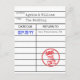 Um cartão postal exclusivo de "save the date" de casamento em estilo cartão de biblioteca para amantes de livros. Este design literário é no estilo de um cartão de checkout de livro de biblioteca vintage. Seus nomes são listados na linha de autor e o título é "O Casamento", mas você pode personalizar todo o texto. Adicionando ao charme retrô está o texto datilografado e o efeito de carimbo de borracha para a "data de devolução" - a data do seu casamento - e o "Save the Date" em vermelho. Pequenos detalhes que adicionam ao charme autêntico. O verso do cartão de livro inclui espaço para detalhes adicionais, incluindo um código QR para o site do seu casamento.