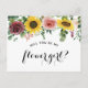 Peça aos seus amigos e familiares para fazerem parte do seu casamento com este cartão floral "Você será minha menina de flores?" com elementos florais de girassol e rosa e caligrafia feminina. Itens combinando estão disponíveis. Cartão de proposta para damas de honra