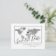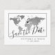 As economias de prata do mapa do mundo o cartão da data com um design moderno e minimalista, mais um marcador do coração você pode mover-se para marcar seu lugar do casamento do destino ou lugar da inspiração do tema do viagem.