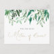 Peça aos seus amigos e familiares para fazerem parte do seu casamento com este cartão floral "Você será minha madrinha" com uma cascata de verde e flores brancas. Itens correspondentes estão disponíveis. Cartão de proposta para a comitiva de noiva
