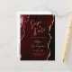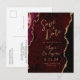 Este elegante cartão de reserva de data moderno apresenta um fundo de ágata em aquarela burgundy cortado com brilho dourado falso. Personalize facilmente a escrita moderna dourada e o texto sem serifa na frente. No verso, edite o endereço de retorno personalizável e insira o URL do seu site de casamento para gerar um código QR que os convidados podem escanear para saber mais sobre o seu próximo evento.