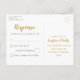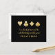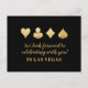 Jogar cartas nos corações, clubes, diamantes e espadas em uma folha de ouro falso em um fundo preto de cor editável. O design de tipografia único no verso é completamente personalizável. Cartões postais RSVP não precisam de um envelope para enviar.
