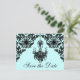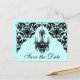 Este cartão postal de salvar a data com lustre e damasco azul aqua e preto combina com o convite de casamento mostrado abaixo. Se você precisar de quaisquer itens adicionais que combinem, por favor envie um email para niteowlstudio@gmail.com com sua solicitação.