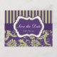 Cartão Postal De Anúncio Cartão de Save the Date de Damasco Roxo, Branco e