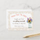 O brilho das flores silvestres em uma jarra, contra uma borda de padrão floral de peônias claras, torna este design uma escolha muito popular para um casamento com tema rústico. Os cartões-postais são uma maneira fácil e eficaz de informar seus convidados sobre o seu grande dia!