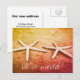 Cartões-postais animados de estrelas-do-mar tropicais para nova casa em destino exótico quente. Texto personalizado de mudança; Nós nos mudamos! Adicione sua nova mudança de endereço no verso. Cartões modernos de nova casa para mudança residencial e comercial. Design de imagem de estrela-do-mar exótica na praia ensolarada com tipografia de letra manuscrita estilosa. Também ótimo para lua de mel, viagem de férias / casamento no destino ou resort de férias. Envie sua própria imagem com estilo de instagram vintage para este modelo. Envie cartões de "nós nos mudamos" para amigos e familiares. Fotografia de cena costeira vintage.