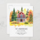 Cartão de Anúncio de Mudança de Endereço Casa Vermelha Rústica Floresta Madeiras Nós Mudamos Outono