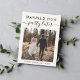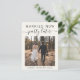 Anúncio de casamento moderno ou cartão postal para informar familiares e amigos que os planos de casamento mudaram, exigindo que você fuja ou reduza o número de convidados em seu casamento para um pequeno grupo íntimo, mas que você realizará uma festa de celebração no futuro. A frente apresenta sua foto e "Casados Agora, Festa Depois" em uma mistura de tipografia simples e escrita moderna contra um fundo creme claro. Sob sua foto, você pode adicionar seus primeiros nomes e data de casamento. No verso, você pode personalizar sua mensagem com mais detalhes e seus nomes em uma escrita semelhante a uma assinatura.