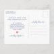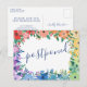 Informe seus convidados que o casamento foi adiado e dê a eles uma nova data ou o link para o seu site para mais informações com este cartão postal colorido com uma moldura de flores em cores do arco-íris onde adiado está escrito em uma caligrafia azul escura encantadora. No verso você pode escrever as novas informações e, sob um pequeno coração, seus nomes em uma linda caligrafia.