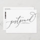 Mude a data! Anuncie para a sua família e amigos o adiamento do seu casamento com este cartão postal de mudança de data. Ele apresenta caligrafia elegante e tipografia simples. Personalize adicionando sua foto, nomes, endereço e outros detalhes. Este cartão postal de mudança de data também será perfeito como um anúncio de casamento às escondidas.