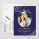 Cartão Postal De Anúncio Casamento Azul do Marinho de Prata Salve a Foto da