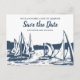 Cartão Postal De Anúncio Casamento de Barco à Vela Náutico Salve a Data