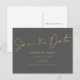 Cartão Postal De Anúncio Casamento de cinza de folha de ouro elegante, salv