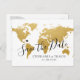 Cartão Postal De Anúncio Casamento de Destino Salva o Mapa de Data Dourada