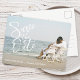 Parabéns pelo noivado! Os anúncios de Salve a Data são o primeiro grande passo no processo de planejamento do casamento! Este design apresenta fotografia completa e tipografia de letra moderna.