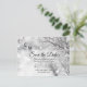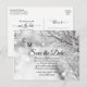 Elegantes e modernas postais SALVE A DATA para enviar aos seus convidados. Caligrafia preta com cena de inverno encantado. Modelos personalizados online para facilitar a edição. Adicione seu texto na frente e no verso do cartão. Contate o designer para pedidos especiais.