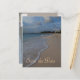 Anúncio de casamento de praia para salvar a data, com uma bela e romântica foto da costa. Céu azul, águas turquesa, sol criam um design sofisticado. Noivas e noivos podem usar este cartão postal de casamento atraente sozinho ou coordená-lo com os selos postais correspondentes e convites de cerimônia.