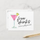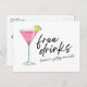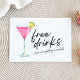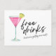 Cartões-postais engraçados e econômicos para salvar a data para o casal divertido que não vê a hora de celebrar com familiares e amigos em seu casamento. Bebidas grátis (e estamos nos casando!) design colorido de coquetel é personalizado com os detalhes do seu casamento.