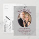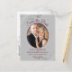 Este belo cartão postal de salve a data é projetado para dar aos seus amigos e familiares um aviso prévio de seu casamento próximo. Ele apresenta um design simples, mas elegante, com texto em cor burgundy ou grená em um fundo cinza, e sua foto em uma moldura oval cercada por cachos e espirais de falso folheado cinza prateado. O verso tem um gráfico fofo que diz "pencil us in" e espaço para uma nota personalizada.