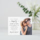 Casamento moderno salve o cartão postal do anúncio de data com sua foto e "Feliz Nunca Depois" em uma mistura de simples tipografia e um roteiro de na moda com baloiços. Personalize os detalhes da data e adicione seus nomes em um script semelhante a assinatura. O verso é vazio de uma nota pessoal manuscrita.