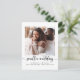 Se circunstâncias imprevistas exigirem que você reduza o tamanho e a quantidade de convidados no seu casamento, você pode informar familiares e amigos que o seu amor e casamento continuarão, mas agora em uma escala menor com este cartão postal de anúncio de casamento reduzido. A frente apresenta sua fotografia favorita em uma moldura quadrada recortada e "Casamento Menor" escrito em uma fonte moderna com floreios, e abaixo você pode personalizar seus primeiros nomes e o anúncio de redução do casamento. No verso, você pode personalizar sua mensagem com mais detalhes e adicionar quaisquer eventos virtuais de casamento e celebrações futuras.