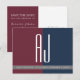 Cartão Postal De Anúncio Casamento Moderno Burgundy Azul Marinho Save The D
