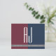 Elegante, simples, cartão postal de anúncio de casamento contemporâneo cinza-verde, burgundy e azul marinho save the date, com iniciais de monograma gigante na frente e caligrafia moderna.