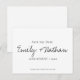 Cartão-postal moderno de anúncio de casamento preto e branco para salvar a data. Elegantes cartões de salvar a data do casamento com texto escrito em uma fonte bonita e estilosa. Esses elegantes cartões de salvar a data são perfeitos para anunciar o seu grande dia. Envie esses cartões elegantes para familiares e amigos. Personalize os cartões alterando os nomes da noiva e do noivo e a data do casamento. Este belo cartão faz parte de uma coleção. Confira outros produtos coordenados na coleção. Para qualquer personalização adicional, sinta-se à vontade para entrar em contato comigo em mypaperlove.2021@gmail.com