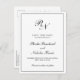 Cartão postal tradicional de save the date de casamento em preto e branco clássico, apresentando um design simples com o monograma das suas duas iniciais e seus nomes em uma caligrafia elegante dentro de uma fina moldura. O verso tem sua mensagem pessoal e endereço de devolução para envio fácil. Este design clássico é perfeito para um casamento formal.