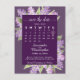 Este belo cartão postal vai avisar seus amigos e família sobre sua próxima data de casamento. O design apresenta um calendário personalizável com um coração à volta do dia especial num quadro roxo de ameixa rodeado por um monte de flores lilás pintadas manualmente num fundo roxo empoeirado. As costas tinham um gráfico fofo que lia "nos lápis" com espaço para uma nota pessoal.