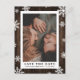 Anuncie seu casamento no inverno de madeira rústico com este feriado elegante, salve os cartões postais com fotos. Personalize facilmente com a sua própria imagem, altere o texto ou a cor de fundo deste casamento no inverno e salve o cartão-postal da fotografia de data.