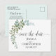 Cartão Postal De Anúncio Casamento Rústico Aquarela com Eucalipto Verde Sua