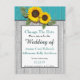 Convite de Casamento Country Moderno Encantador com Madeira Ciano Rústica e Girassol Dourado, Perfeito para os casamentos deste ano